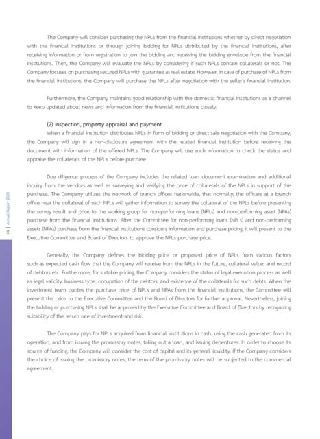 Company focuses on purchasing secured NPLs with guarantee as real estate. However, in case of purchase of NPLs from
