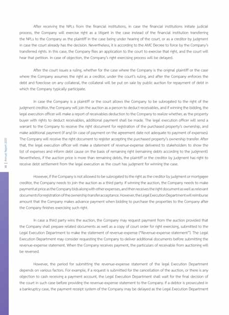 After receiving the NPLs from the financial institutions, in case the financial institutions initiate judicial