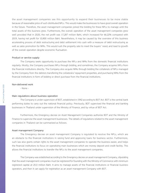 Furthermore, the Emergency decree on Asset Management Companies authorize BOT and the Ministry of