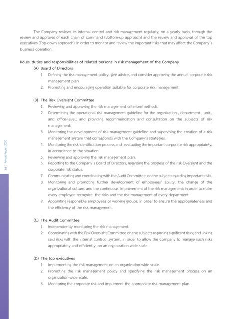 Roles, duties and responsibilities of related persons in risk management of the Company