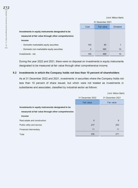 As at 31 December 2022 and 2021, investments in securities where the Company holds not