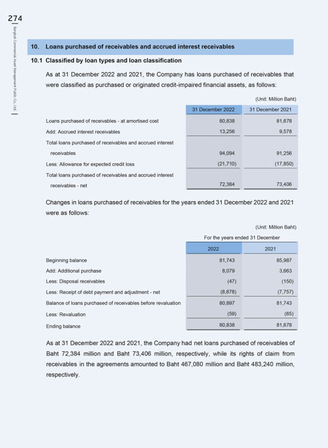 10. Loans purchased of receivables and accrued interest receivables