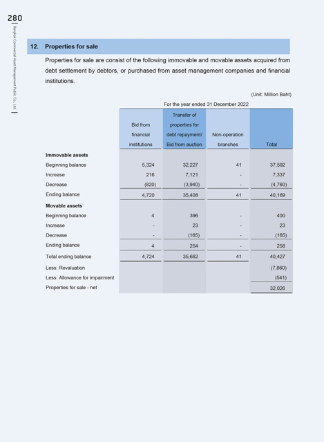 Properties for sale are consist of the following immovable and movable assets acquired from