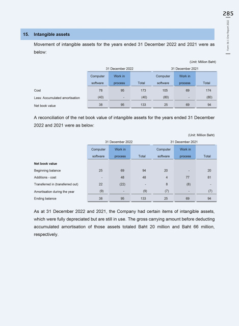 Movement of intangible assets for the years ended 31 December 2022 and 2021 were as