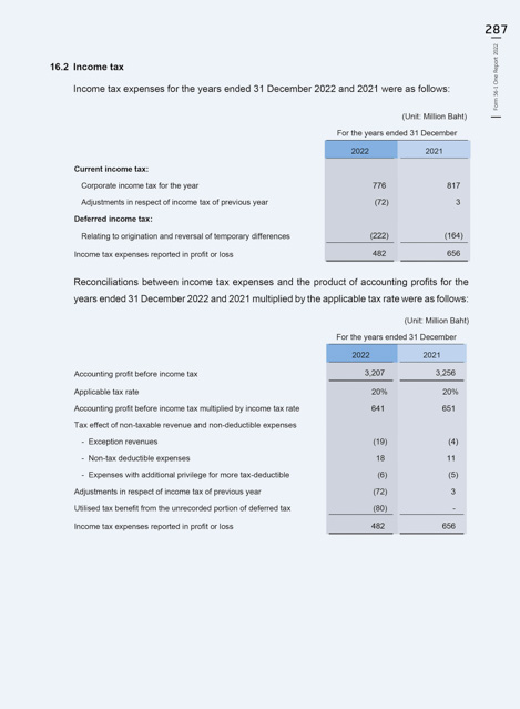 Income tax expenses for the years ended 31 December 2022 and 2021 were as follows: