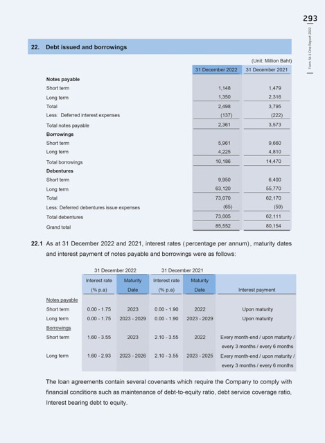 22.1 As at 31 December 2022 and 2021, interest rates (percentage per annum), maturity dates