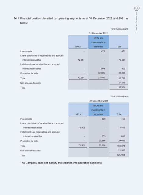 34.1 Financial position classified by operating segments as at 31 December 2022 and 2021 as