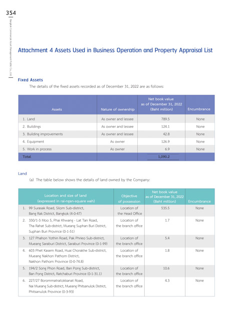 Attachment 4 Assets Used in Business Operation and Property Appraisal List