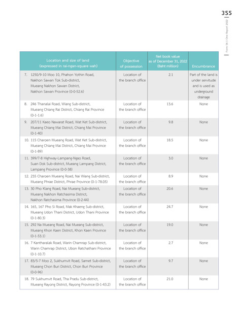 (expressed in rai-ngan-square wah) of possession (Baht million) Encumbrance