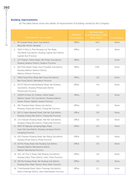 (a) The table below shows the details of improvement of buildings owned by the Company:
