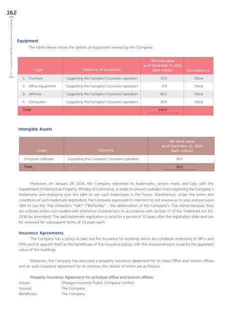 ༛ Moreover,༛the༛Company༛has༛executed༛a༛property༛insurance༛agreement༛for༛its༛Head༛Ofພce༛and༛branch༛ofພces༛
