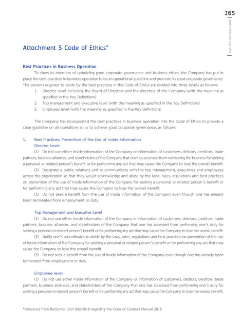 *Reference from BorSorKor (Vor) 062/2018 regarding the Code of Conduct Manual 2018