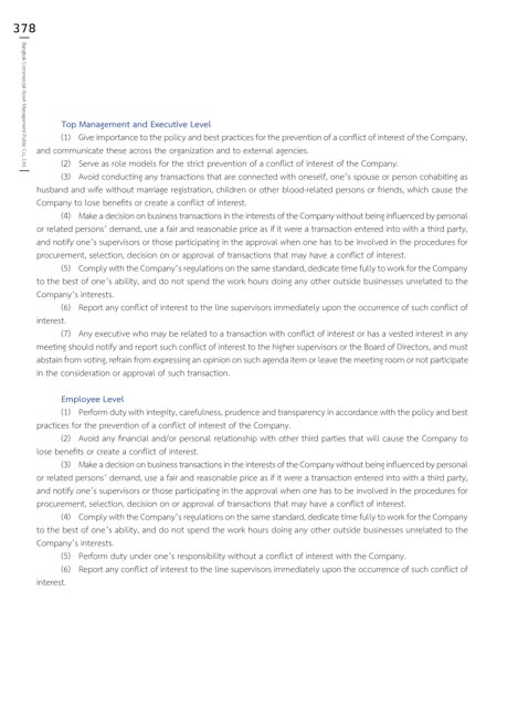 (5) Perform duty under one’s responsibility without a conflict of interest with the Company.