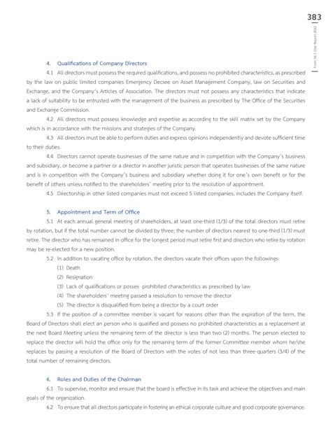 4.1 All directors must possess the required qualifications, and possess no prohibited characteristics, as prescribed