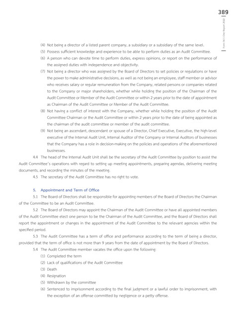 5.3 The Audit Committee has a term of office and performance according to the term of being a director,