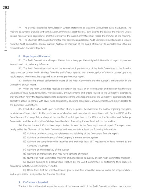 8.2 The Audit Committee must report the internal audit performance of the Audit Committee to the Board at
