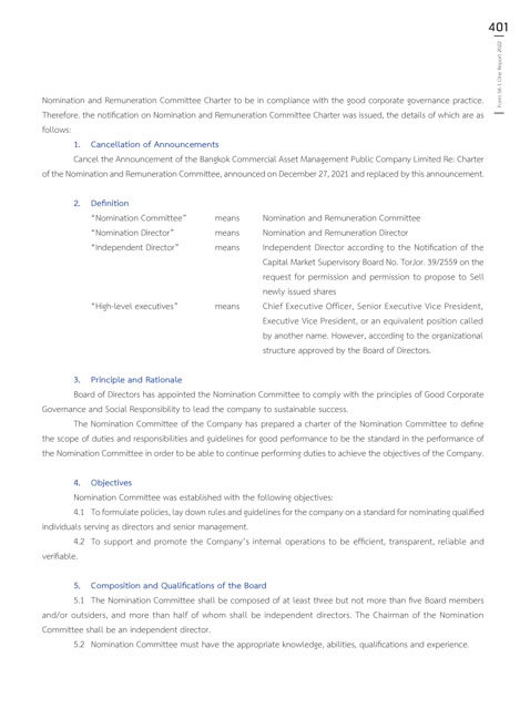 Cancel the Announcement of the Bangkok Commercial Asset Management Public Company Limited Re: Charter