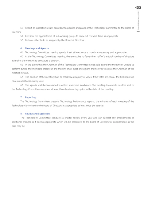 5.3 Report on operating results according to policies and plans of the Technology Committee to the Board of