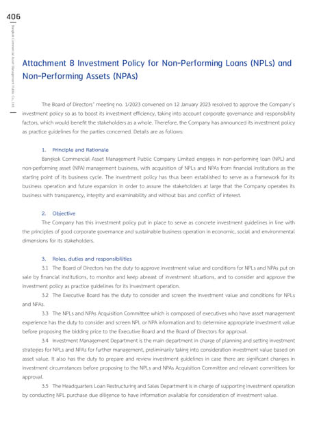 Attachment 8 Investment Policy for Non-Performing Loans (NPLs) and