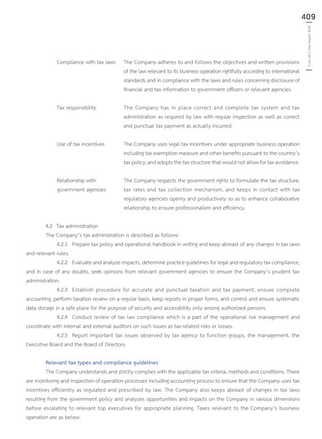 incentives efficiently as regulated and prescribed by law. The Company also keeps abreast of changes in tax laws